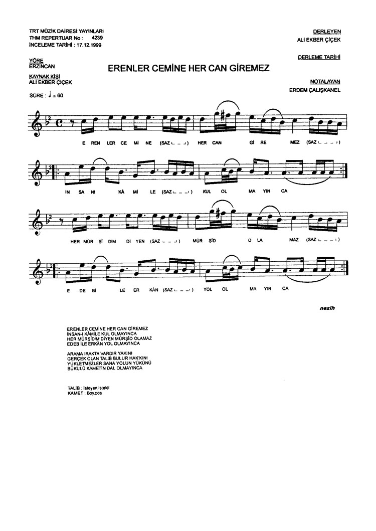 Erenler cemine her can giremez (Rep.No: 4239)