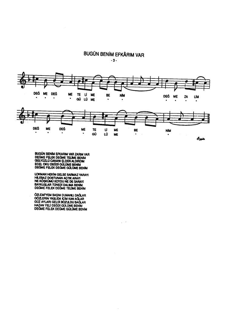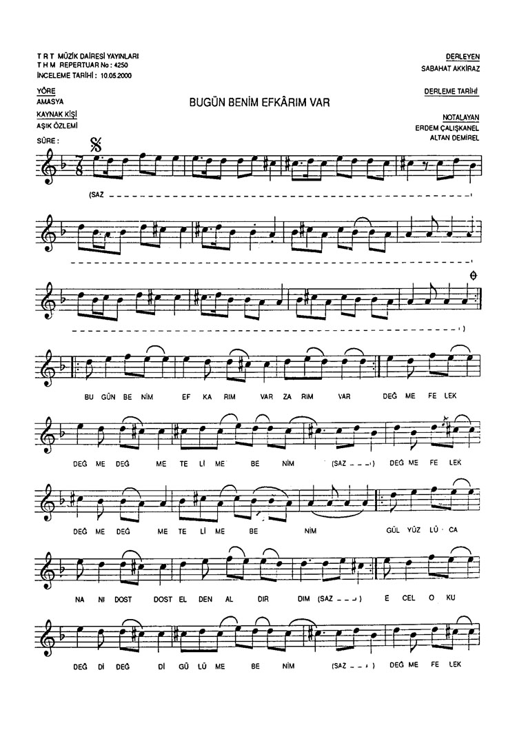 Bugün benim efkarım var zarım var (Rep.No: 4250)