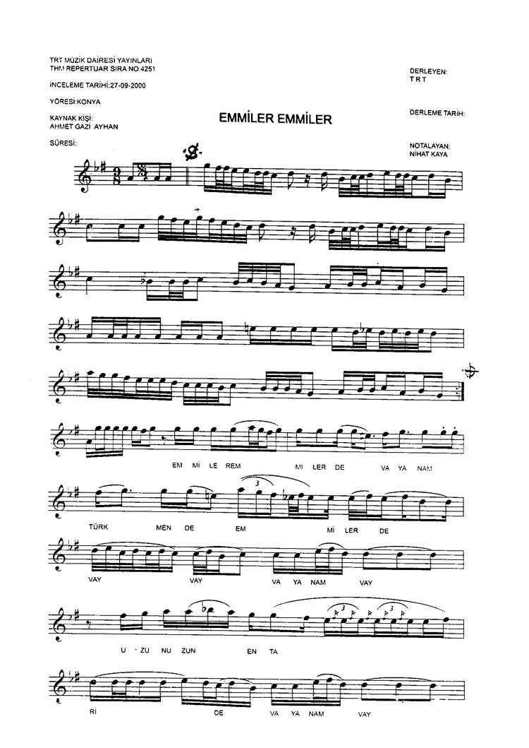 Bu türkünün notasında, sözlerinde veya örnek icrasında bir eksiklik yahut yanlışlık tespit ederseniz, e-mail ile veya WhatsApp hattından bildirim yaparak katkıda bulunabilirsiniz.