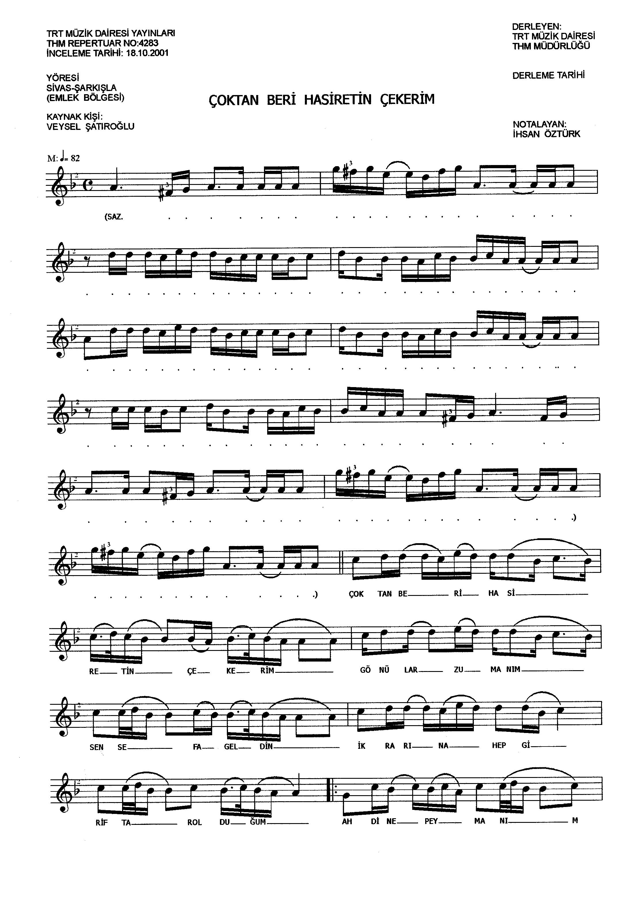 Çoktan beri hasiretin çekerim (Rep.No: 4283)