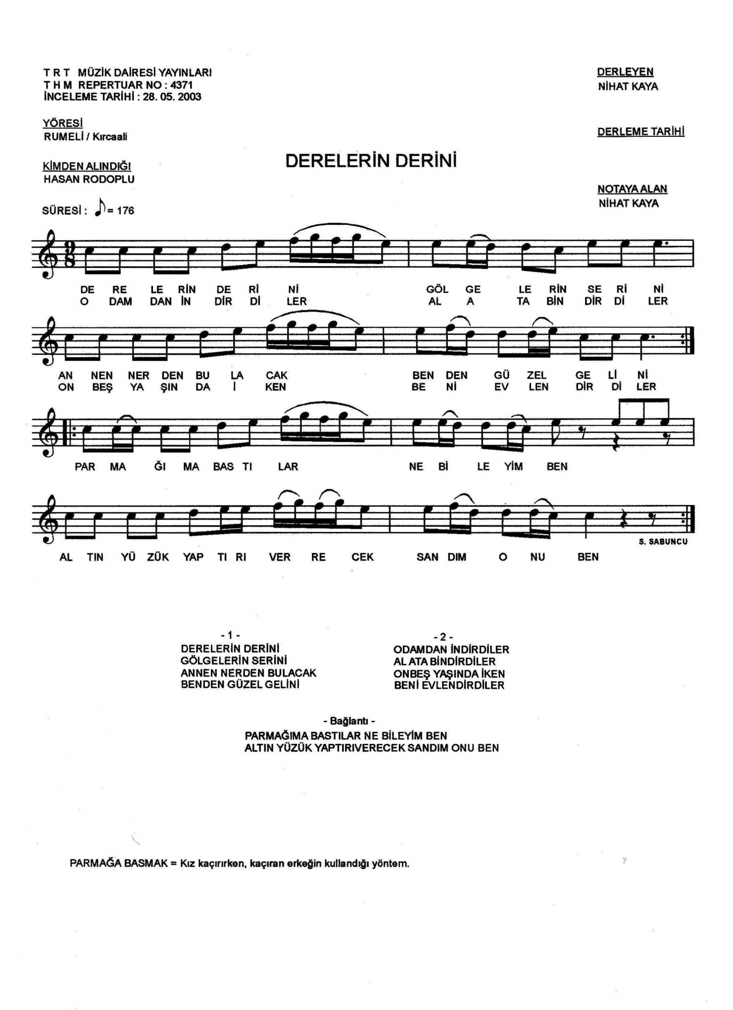 Bu türkünün notasında, sözlerinde veya örnek icrasında bir eksiklik yahut yanlışlık tespit ederseniz, e-mail ile veya WhatsApp hattından bildirim yaparak katkıda bulunabilirsiniz.