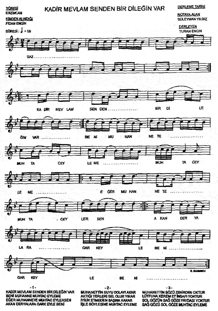 Bu türkünün notasında, sözlerinde veya örnek icrasında bir eksiklik yahut yanlışlık tespit ederseniz, e-mail ile veya WhatsApp hattından bildirim yaparak katkıda bulunabilirsiniz.