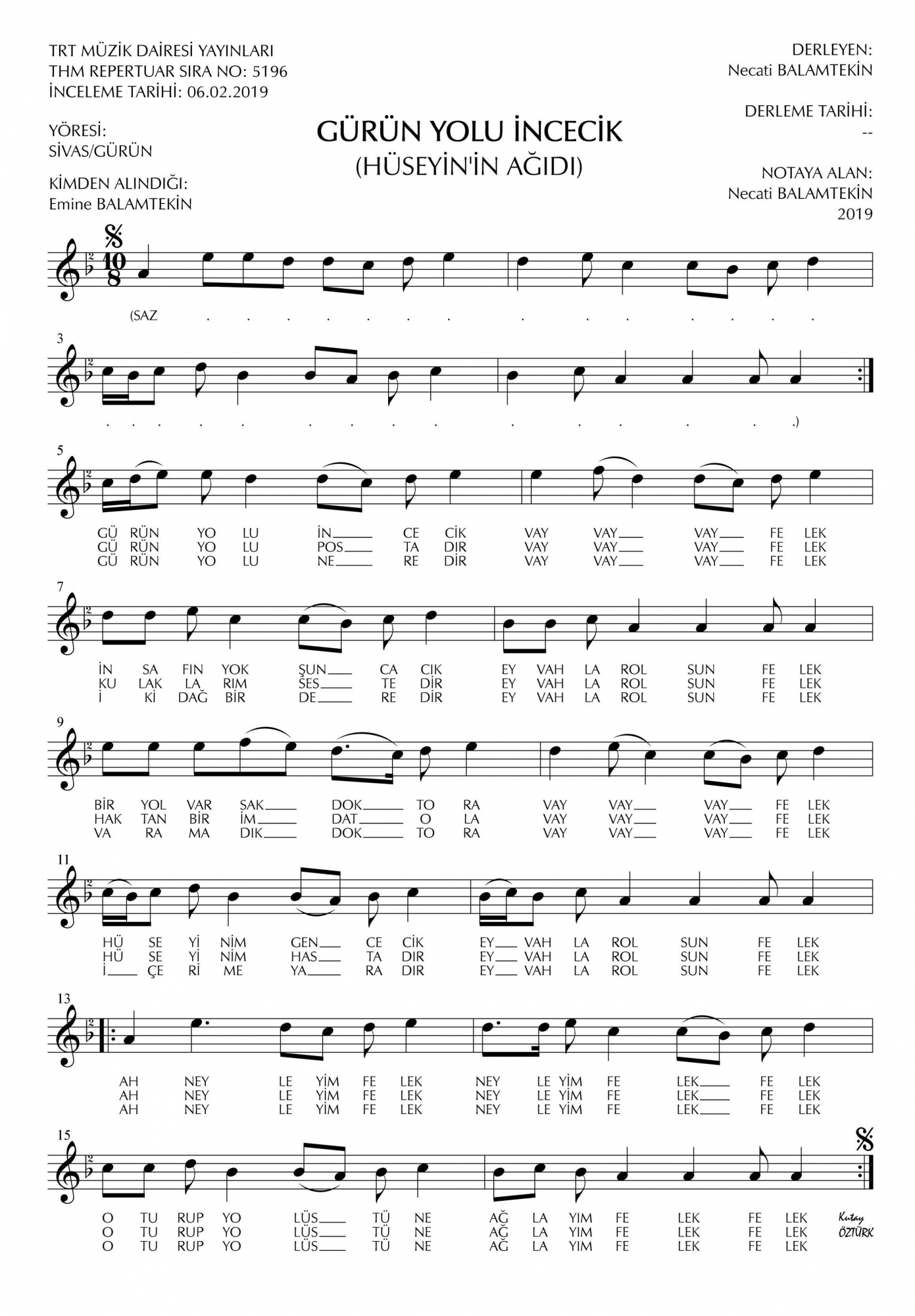 Bu türkünün notasında, sözlerinde veya örnek icrasında bir eksiklik yahut yanlışlık tespit ederseniz, e-mail ile veya WhatsApp hattından bildirim yaparak katkıda bulunabilirsiniz.